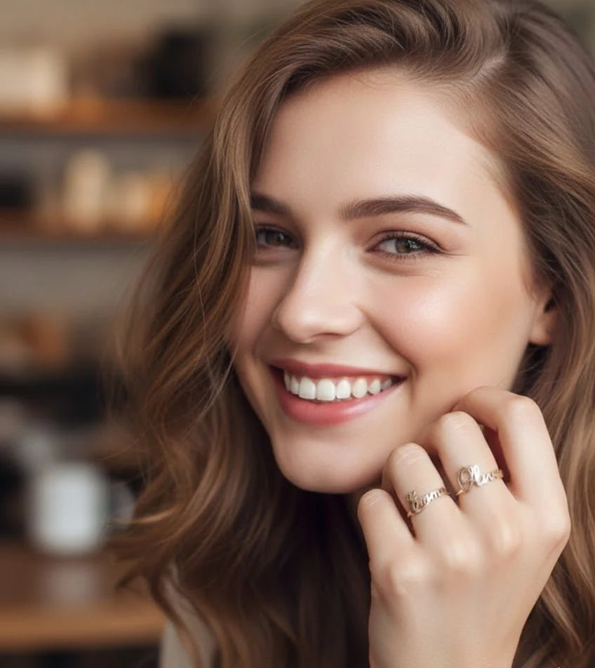 A beautifully handcrafted name ring featuring your chosen name in elegant cursive script. This personalized ring is available in Gold and Silver, offering a stylish and meaningful accessory that can be worn daily. Perfect as a friendship ring, couple ring, or a unique self-love gift.
